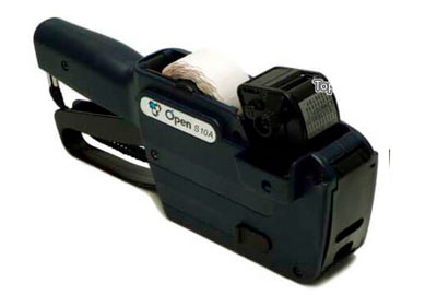 Компактний однорядковий етикет-пістолет Open S10 / A, друкує і завдає на товар етикетки, інформацію про продукцію у вигляді букв, цифр, символів. З його допомогою вказують ціну, код № партії, час і дату. Інструмент застосовують у виробництві і торгівлі для оперативної маркування товару.